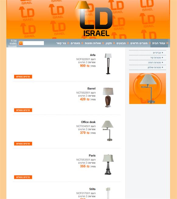 עיצוב ובניית חנות וירטואלית LD Israel עיצוב ובניית חנות וירטואלית לרשת ארצית העוסקת ביבוא, שיווק, ומכירה של מוצרי תאורה ברחבי הארץ. העיצוב נעסה תוך הקפדה על המסר אותו אתר החנות צריך לשדר. תיק עבודות | בניית אתרים | חנויות וירטואליותתיק עבודות | עיצוב אתרים | עיצוב חנויות וירטואלייות